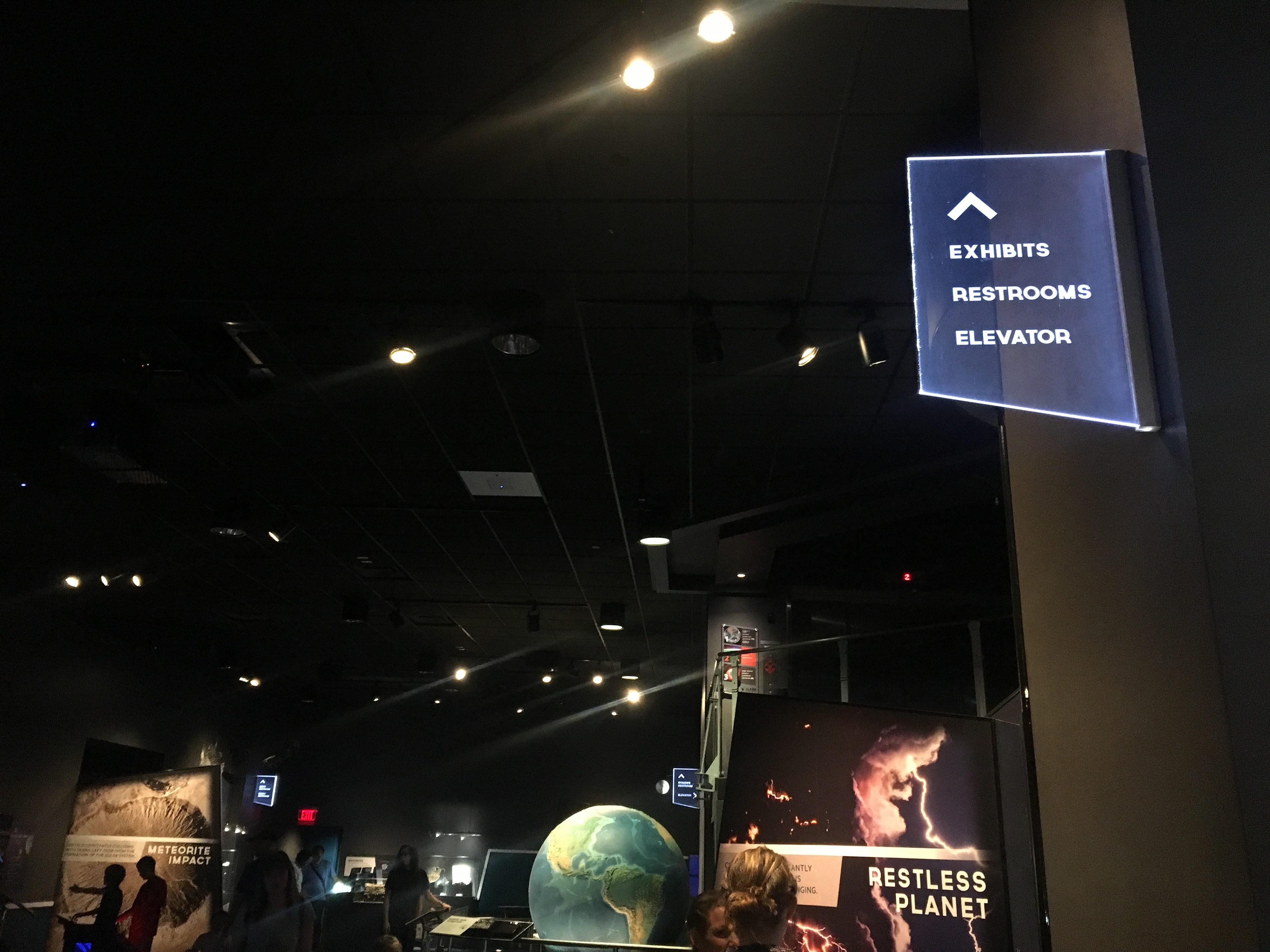 I worked with the Clark Planetarium to create new wayfinding signs as part of their museum redesign project. The existing signage was hard to see, outdated, and not up to code. We worked with a local fabrication firm to create LED-lit acrylic signs. The design was simple yet dynamic with angle lines to relate to some of the same visuals in the new exhibits.