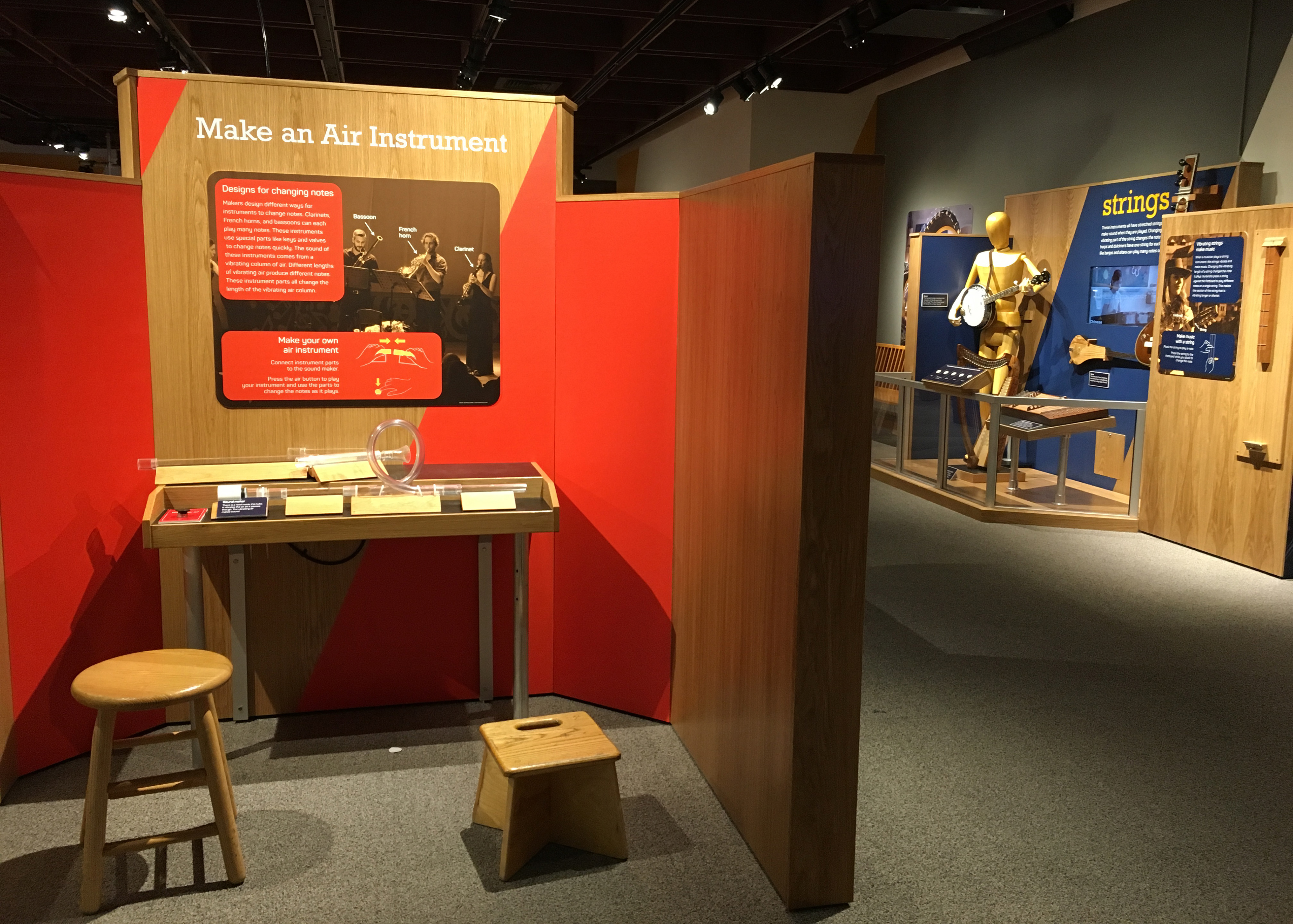 I worked closely with the exhibits team to come up with color palette, fonts, logo, design direction for the overall look and feel of the exhibit. The client wanted something modern, simple, and that would allow the instruments and large images of musicians and instrument makers to be highlighted. I also incorporated patents of instrument design as a reference to the historical aspects of musical instruments.