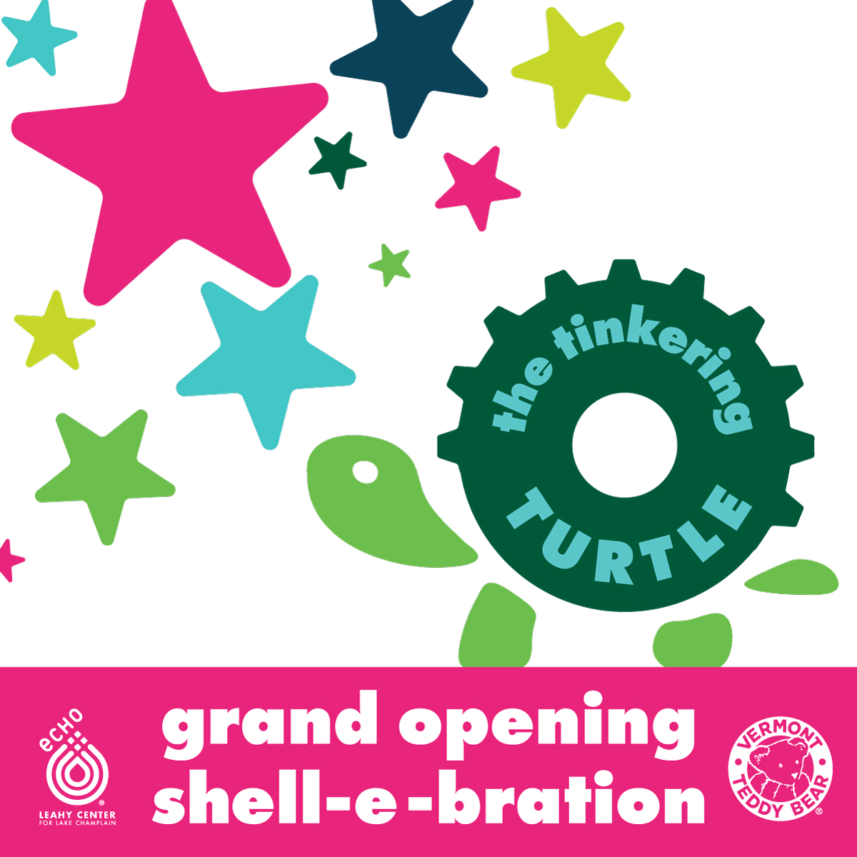 As Creative Director for ECHO, a science and nature museum in downtown Burlington, Vermont, I was tasked with naming, designing the brand, as well as brand assets and the toy store environment for our museum's new toy store. The store is down the street at a separate location from the museum as an additional revenue stream to support the museum. The store's brand needed to represent hands-on play and learning that the museum's brand also represented. ECHO is well-known for its live turtles as well as for engineering and science so the name The Tinkering Turtle seemed like a strong fit. We partnered with a local brand, Vermont Teddy Bear, to be part of this business endeavor. The design direction also had to work with ECHO's and their brand. We only had about 2 months to make a brand and design a store. Part of the space was designated to a back birthday party room too.